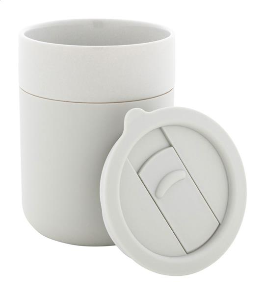 Ceramiczny kubek podróżny pokryty silikonem z pokrywką do picia z tworzywa sztucznego PP. 300ml.