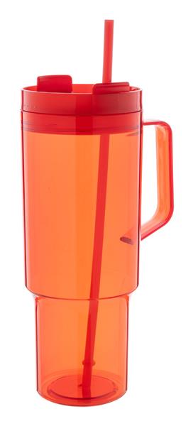 Kubek podróżny z pojedynczą ścianką z tworzywa RPET, z dopasowaną kolorystycznie pokrywką z PP i słomką. Pojemność 1200 ml.