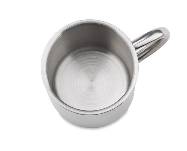 Poręczny kubek wykonany ze stali nierdzewnej. Pojemność 210 ml. Lekki, wygodny oraz wyposażony w podwójne ścianki dłużej trzymające ciepło. Znakowanie możliwe na korpusie kubka.
