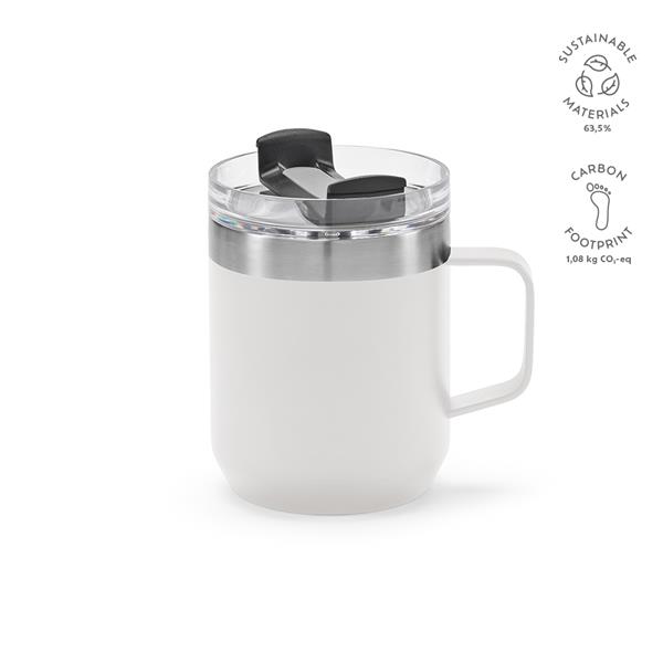 Ten kubek o pojemności 420 ml (350 ml netto) jest niezawodnym towarzyszem, od biura po podróże. Wykonany ze stali nierdzewnej z recyklingu: idealny do kawy, herbaty lub mrożonych napojów. Izolacja próżniowa zapewnia idealną temperaturę. Obrotowa pokrywka z 3 funkcjami: picie, wkładanie słomki i zamykanie.