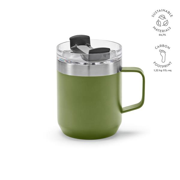Ten kubek o pojemności 420 ml (350 ml netto) jest niezawodnym towarzyszem, od biura po podróże. Wykonany ze stali nierdzewnej z recyklingu: idealny do kawy, herbaty lub mrożonych napojów. Izolacja próżniowa zapewnia idealną temperaturę. Obrotowa pokrywka z 3 funkcjami: picie, wkładanie słomki i zamykanie.