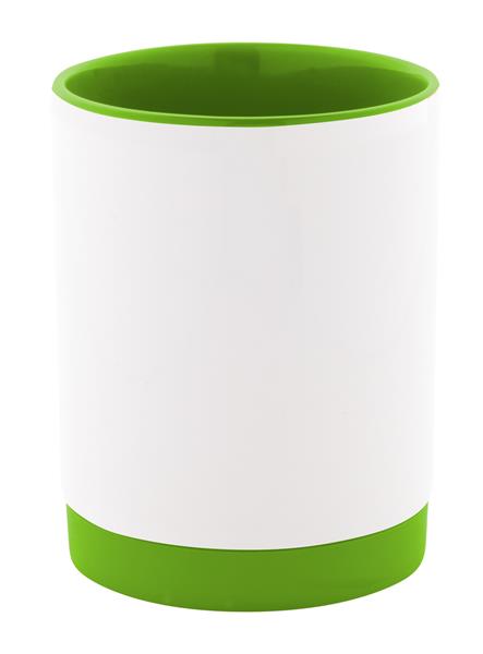 Kubek ceramiczny do sublimacji z kolorowym wnętrzem i dopasowanym kolorystycznie silikonowym pierścieniem na spodzie. Pojemność 300 ml. W białym kartoniku.