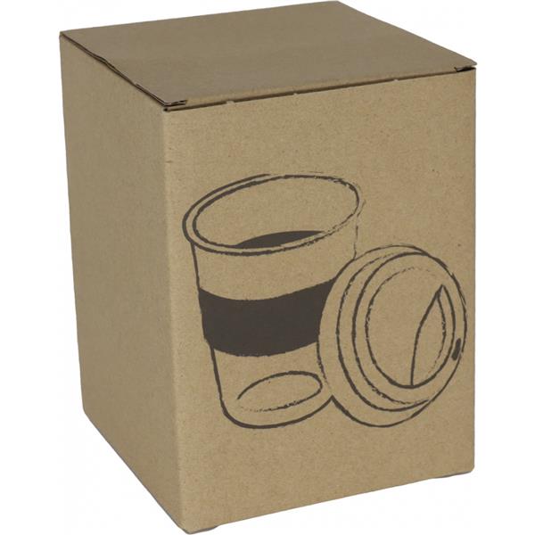 Kubek o pojemności 300ml, wykonany ze szkła, z silikonową pokrywką i silikonowym pierścieniem-nakładką, dzięki której nie ma ryzyka poparzenia dłoni.