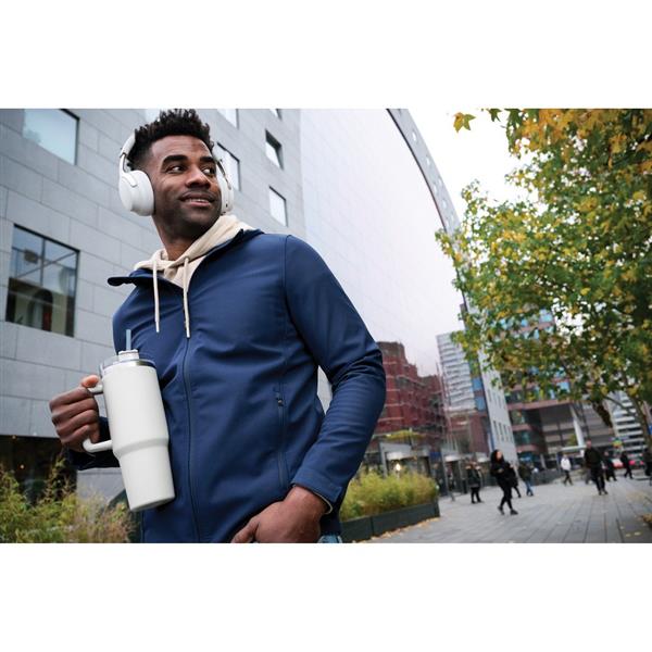 Kubek termiczny 1200 ml, podwójne ścianki z próżnią pomiędzy dzięki czemu kubek posiada funkcję termosu, posiada słomkę i szeroki otwór do picia, wykonany z materiałów z recyklingu, całkowita zawartość materiałów z recyklingu obliczona na podstawie wagi całkowitej produktu: 29%