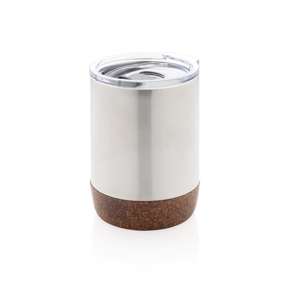 Korkowy kubek termiczny 180 ml z korkową podstawą, wykonany ze stali z recyklingu z certyfikatem RCS, całkowita zawartość materiałów z recyklingu obliczona na podstawie wagi całkowitej produktu: 69%, podwójne ścianki ze stali nierdzewnej z próżnią między ściankami, korkowa podstawa, pasuje do większości ekspresów do kawy, utrzymuje temperaturę napojów gorących do 10 godzin oraz zimnych do 15 godzin