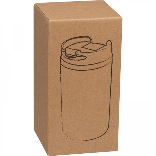 Kubek ze stali nierdzewnej o pojemności 250ml z zamykanym plastikowym ustnikiem.