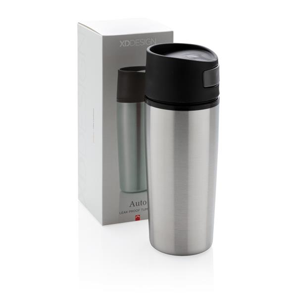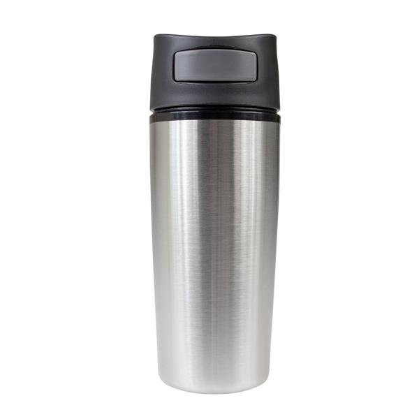 Kubek termiczny 300 ml, stal nierdzewna na zewnątrz, wnętrze z PP, szczelne wieczko z przyciskiem z boku, nie wymaga obsługi oburącz, utrzymuje temperaturę napojów gorących do 4 godzin, wzór zastrzeżony®