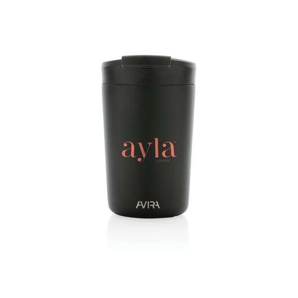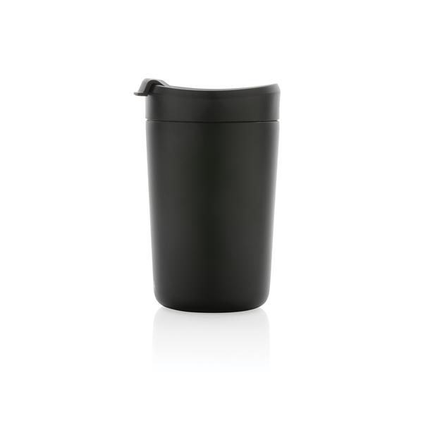 Kubek termiczny 300 ml, podwójne ścianki ze stali nierdzewnej z próżnią pomiędzy, wykonany ze stali nierdzewnej z recyklingu z certyfikatem RCS i z PP z recyklingu, całkowita zawartość materiałów z recyklingu obliczona na podstawie wagi całkowitej przedmiotu: 94%, w pudełku z papieru kraftowego, pudełko można wykorzystać jako stojak na telefon lub doniczkę