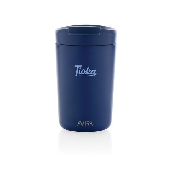 Kubek termiczny 300 ml, podwójne ścianki ze stali nierdzewnej z próżnią pomiędzy, wykonany ze stali nierdzewnej z recyklingu z certyfikatem RCS i z PP z recyklingu, całkowita zawartość materiałów z recyklingu obliczona na podstawie wagi całkowitej przedmiotu: 94%, w pudełku z papieru kraftowego, pudełko można wykorzystać jako stojak na telefon lub doniczkę