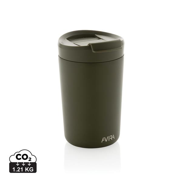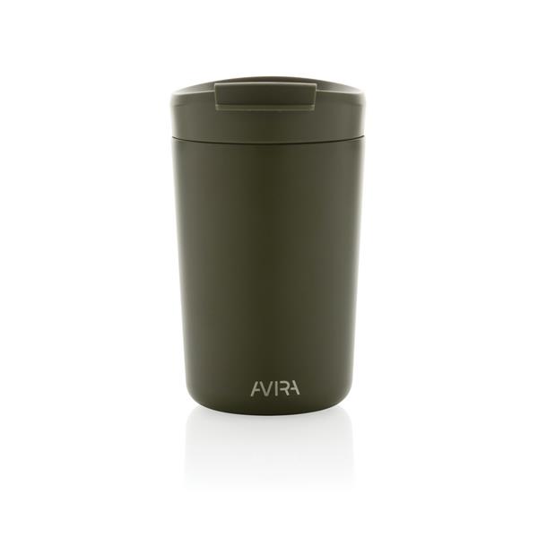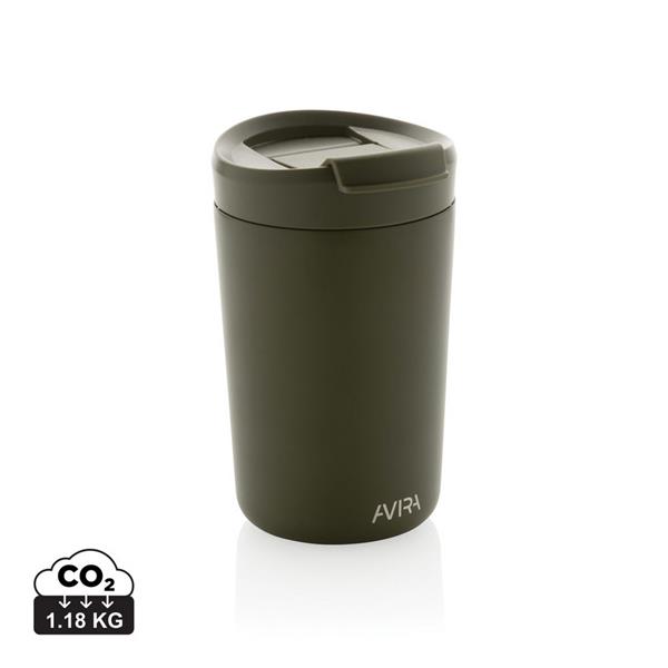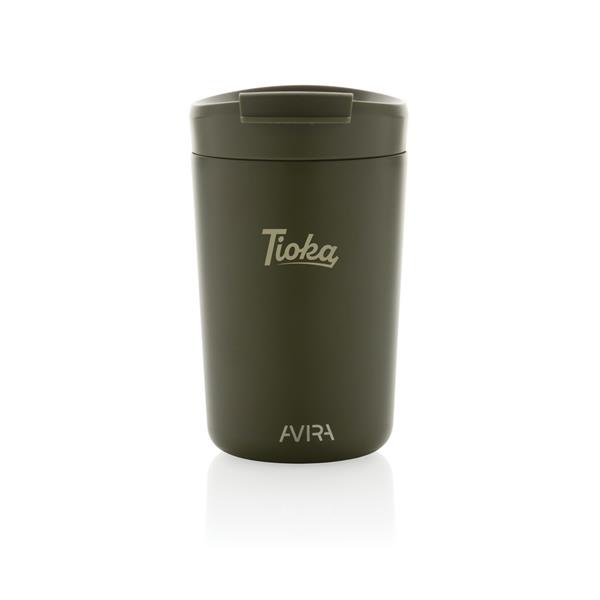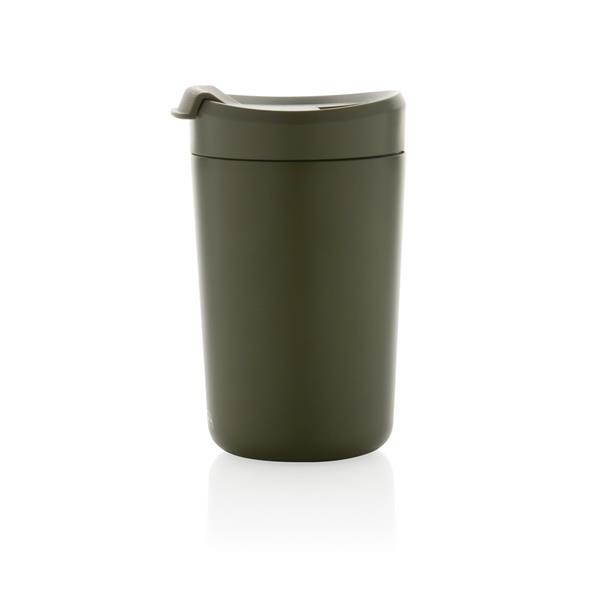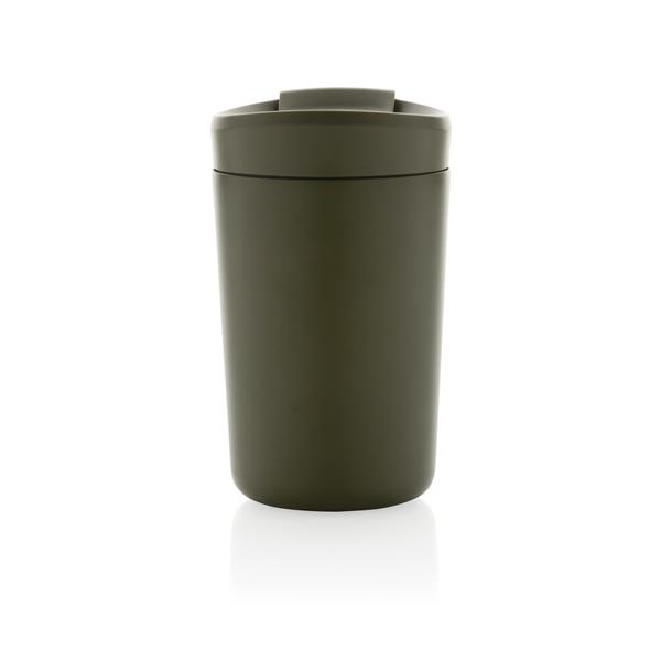 Kubek termiczny 300 ml, podwójne ścianki ze stali nierdzewnej z próżnią pomiędzy, wykonany ze stali nierdzewnej z recyklingu z certyfikatem RCS i z PP z recyklingu, całkowita zawartość materiałów z recyklingu obliczona na podstawie wagi całkowitej przedmiotu: 94%, w pudełku z papieru kraftowego, pudełko można wykorzystać jako stojak na telefon lub doniczkę