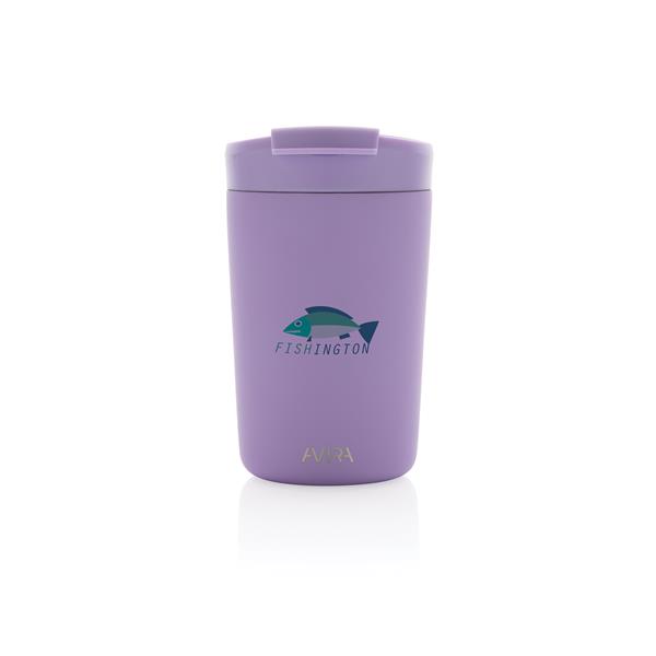 Kubek termiczny 300 ml, podwójne ścianki ze stali nierdzewnej z próżnią pomiędzy, wykonany ze stali nierdzewnej z recyklingu z certyfikatem RCS i z PP z recyklingu, całkowita zawartość materiałów z recyklingu obliczona na podstawie wagi całkowitej przedmiotu: 94%, w pudełku z papieru kraftowego, pudełko można wykorzystać jako stojak na telefon lub doniczkę