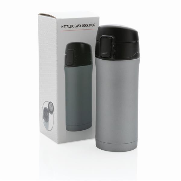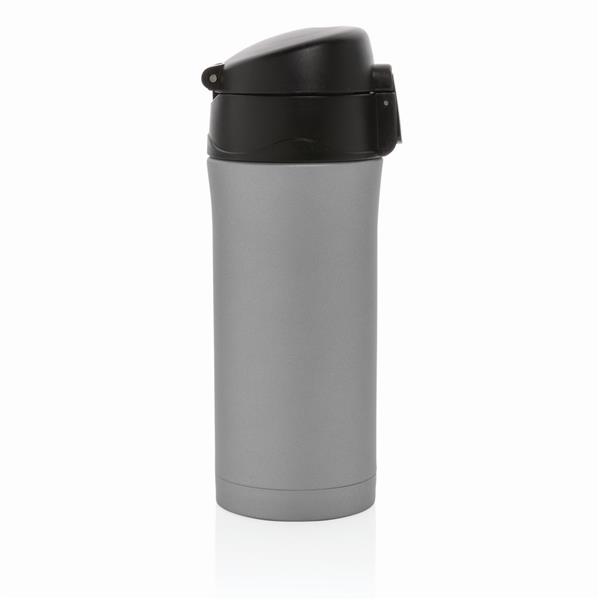 Kubek termiczny 300 ml, wykonany ze stali nierdzewnej, podwójne ścianki z próżnią między ściankami, utrzymuje temperaturę napojów ciepłych do 5 godzin oraz zimnych do 15 godzin, szczelne, zamykane wieczko, które można myć w zmywarce, nie wymaga obsługi oburącz, pasuje do każdego uchwytu samochodowego, klasa termiczna: B