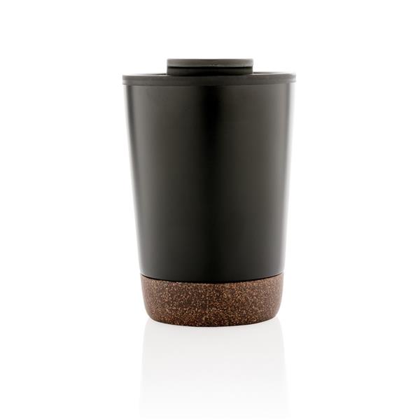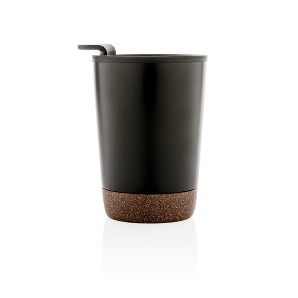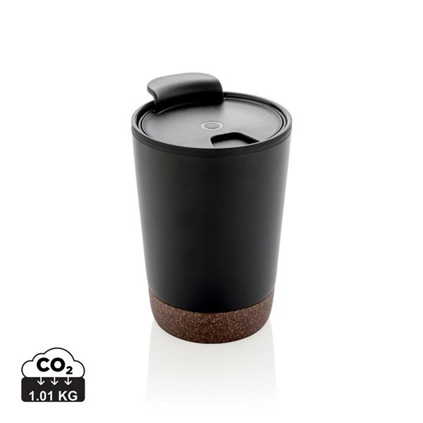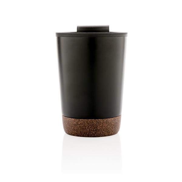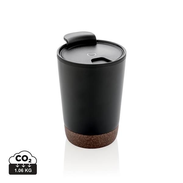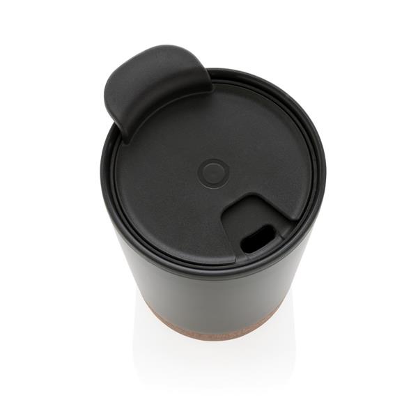 Kubek termiczny 300 ml, podwójne ścianki, wnętrze z PP z recyklingu z certyfikatem GRS, całkowita zawartość materiałów z recyklingu obliczona na podstawie wagi całkowitej produktu: 52%, korkowe elementy na zewnątrz, utrzymuje temperaturę napojów gorących do 4 godzin oraz zimnych do 6 godzin