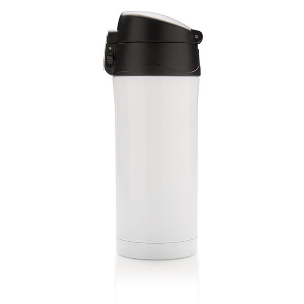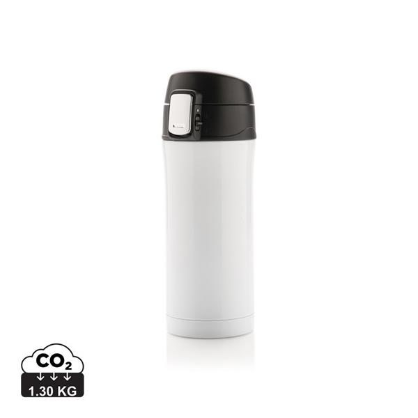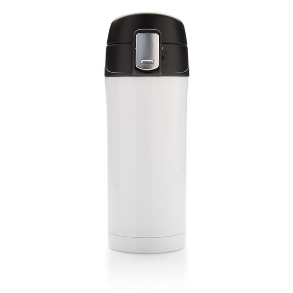 Kubek termiczny 300 ml, podwójne ścianki ze stali nierdzewnej z próżnią pomiędzy, obsługa jedną ręką, wykonany z materiałów pochodzących z recyklingu z certyfikatem RCS, całkowita zawartość materiałów z recyklingu obliczona na podstawie wagi całkowitej przedmiotu: 71%, w pudełku z papieru kraftowego, utrzymuje temperaturę napojów gorących do 20 godzin oraz zimnych do 15 godzin