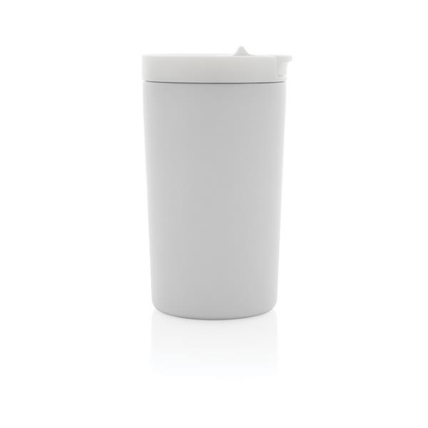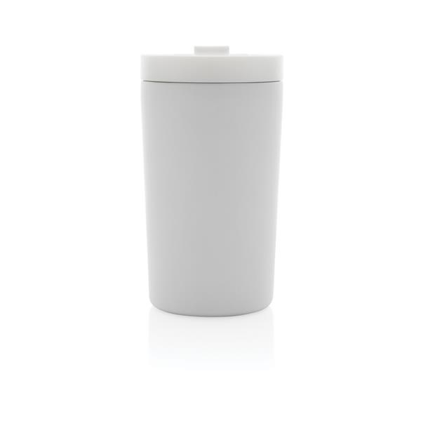 Kubek termiczny 300 ml, podwójne ścianki z próżnią pomiędzy, wykonany z materiałów pochodzących z recyklingu z certyfikatem RCS, całkowita zawartość materiałów z recyklingu obliczona na podstawie wagi całkowitej przedmiotu: 80%, w pudełku z papieru kraftowego, utrzymuje temperaturę napojów gorących do 10 godzin oraz zimnych do 15 godzin