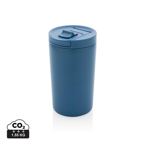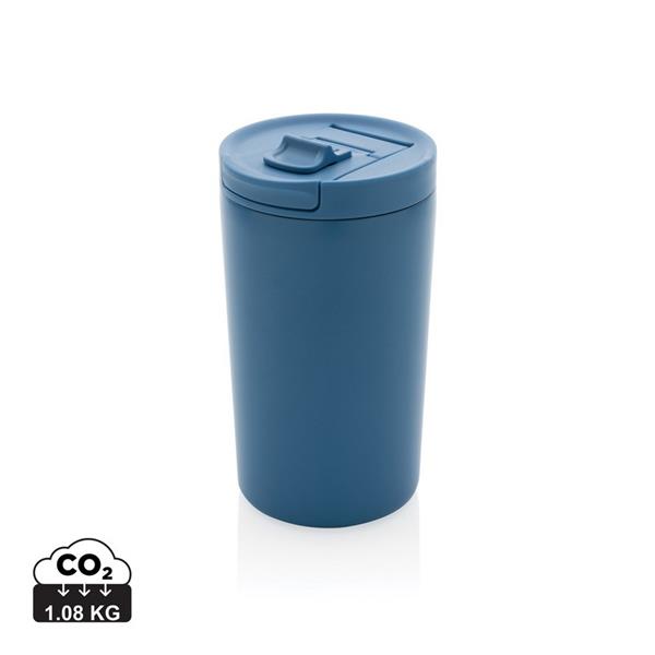 Kubek termiczny 300 ml, podwójne ścianki z próżnią pomiędzy, wykonany z materiałów pochodzących z recyklingu z certyfikatem RCS, całkowita zawartość materiałów z recyklingu obliczona na podstawie wagi całkowitej przedmiotu: 80%, w pudełku z papieru kraftowego, utrzymuje temperaturę napojów gorących do 10 godzin oraz zimnych do 15 godzin