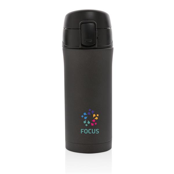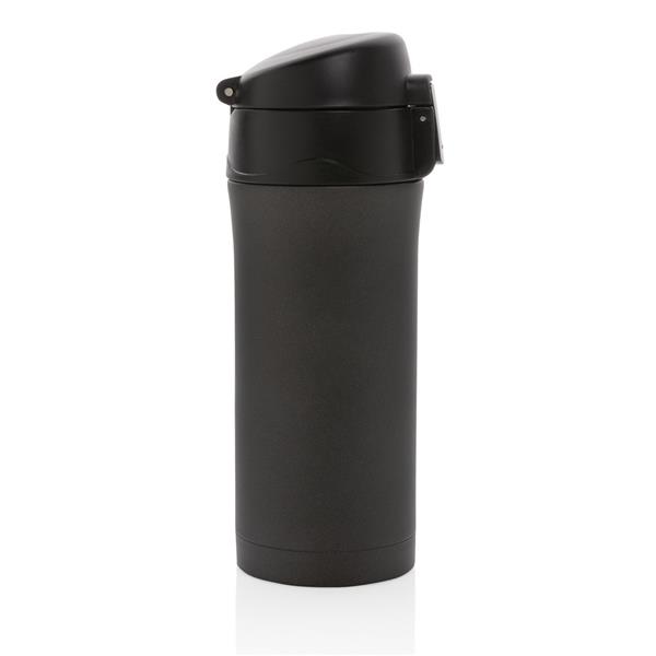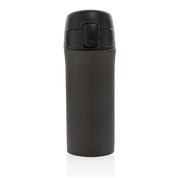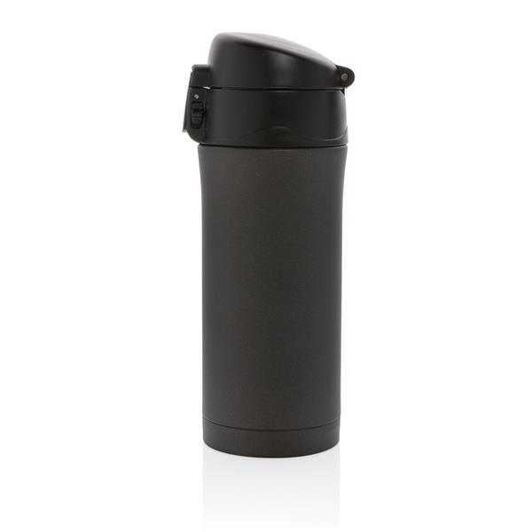 Kubek termiczny 300 ml, wykonany ze stali nierdzewnej, podwójne ścianki z próżnią między ściankami, utrzymuje temperaturę napojów ciepłych do 5 godzin oraz zimnych do 15 godzin, szczelne, zamykane wieczko, które można myć w zmywarce, nie wymaga obsługi oburącz, pasuje do każdego uchwytu samochodowego, klasa termiczna: A