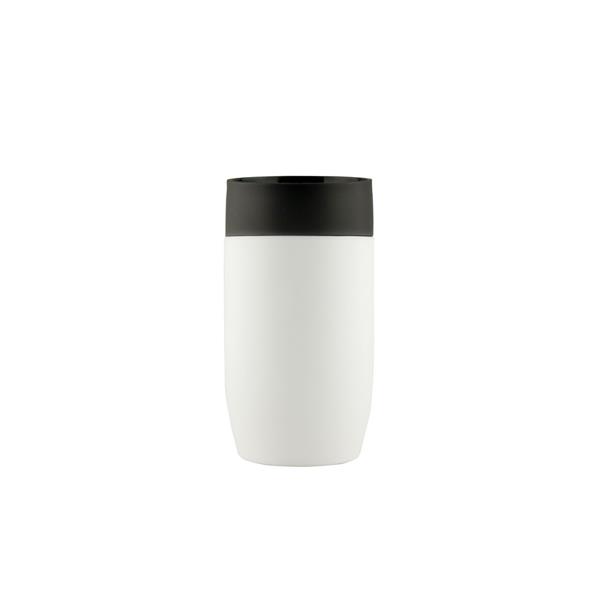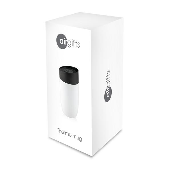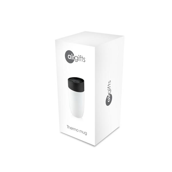 Kubek termiczny 330 ml Air Gifts, posiada podwójne ścianki ze stali nierdzewnej z miedzianą izolacją próżniową, co spowalnia oddawanie temperatury na zewnątrz, zachowując funkcje termosu, plastikowe wieczko z przyciskiem otwarcia/zamknięcia ustnika umożliwiającym obsługę jedną ręką, matowe wykończenie, utrzymuje temperaturę napojów gorących do 15 godzin +leakproof
