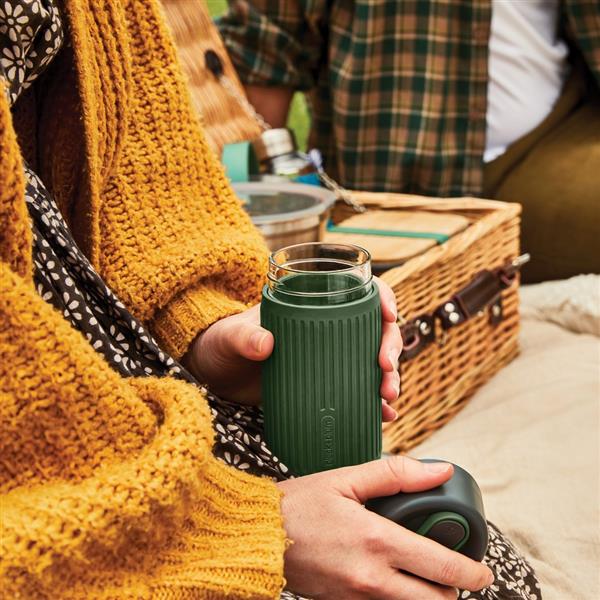 Kubek termiczny 340 ml, wykonany ze szkła borokrzemowego, zamykane wieczko