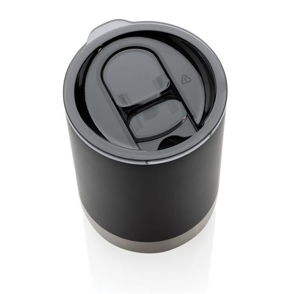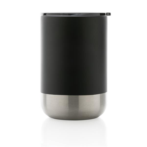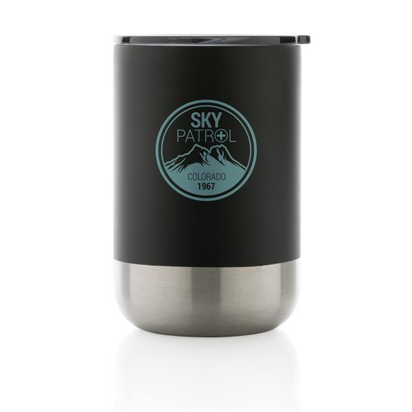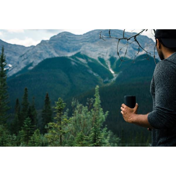 Kubek termiczny 360 ml, podwójne ścianki z próżnią pomiędzy, utrzymuje temperaturę napojów ciepłych do 3 godzin oraz zimnych do 6 godzin, wieczko zapobiegające rozlewaniu, wykonany ze stali nierdzewnej z recyklingu z certyfikatem RCS (Recycled Claim Standard) który gwarantuje, że wykorzystane materiały pochodzą z recyklingu, całkowita zawartość materiału z recyklingu obliczona w oparciu o wagę całkowitą przedmiotu: 83%, w pudełku z papieru kraftowego