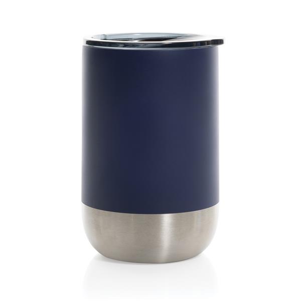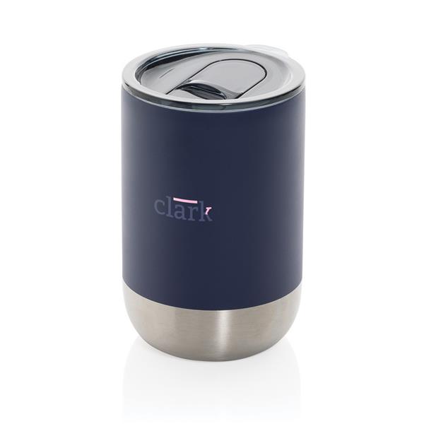 Kubek termiczny 360 ml, podwójne ścianki z próżnią pomiędzy, utrzymuje temperaturę napojów ciepłych do 3 godzin oraz zimnych do 6 godzin, wieczko zapobiegające rozlewaniu, wykonany ze stali nierdzewnej z recyklingu z certyfikatem RCS (Recycled Claim Standard) który gwarantuje, że wykorzystane materiały pochodzą z recyklingu, całkowita zawartość materiału z recyklingu obliczona w oparciu o wagę całkowitą przedmiotu: 83%, w pudełku z papieru kraftowego