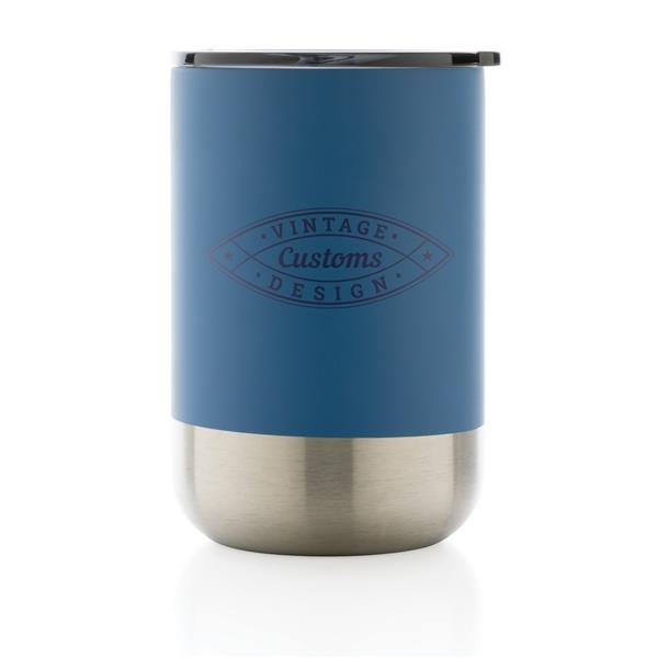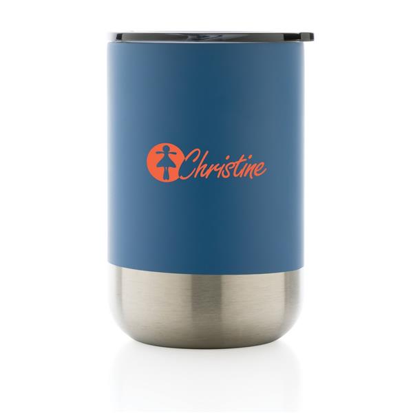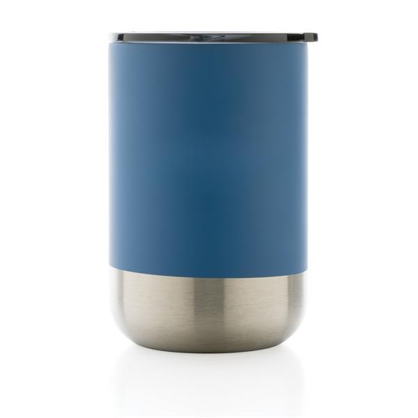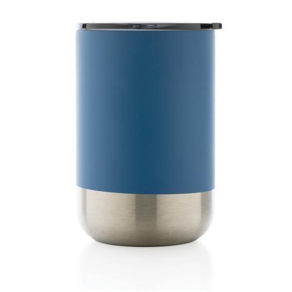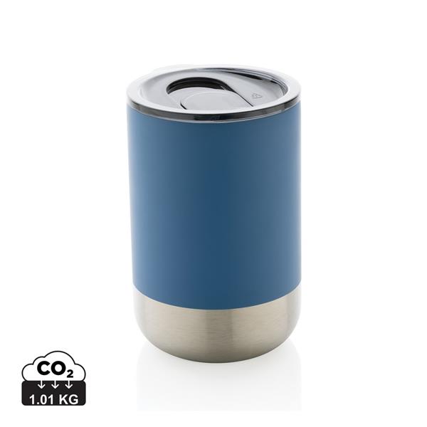 Kubek termiczny 360 ml, podwójne ścianki z próżnią pomiędzy, utrzymuje temperaturę napojów ciepłych do 3 godzin oraz zimnych do 6 godzin, wieczko zapobiegające rozlewaniu, wykonany ze stali nierdzewnej z recyklingu z certyfikatem RCS (Recycled Claim Standard) który gwarantuje, że wykorzystane materiały pochodzą z recyklingu, całkowita zawartość materiału z recyklingu obliczona w oparciu o wagę całkowitą przedmiotu: 83%, w pudełku z papieru kraftowego