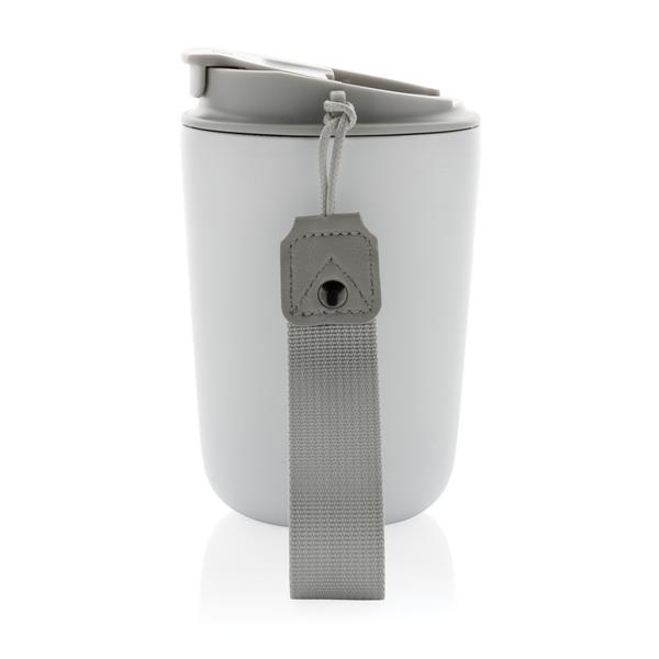 Kubek termiczny 380 ml, szczelny, wykonany ze stali nierdzewnej z recyklingu z certyfikatem RCS, całkowita zawartość materiałów z recyklingu obliczona w oparciu o wagę całkowitą przedmiotu: 74%, ślad węglowy produktu: 1,75 kg CO2