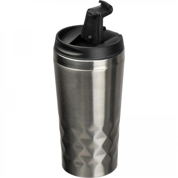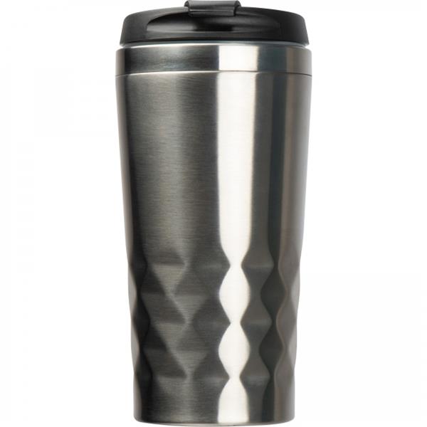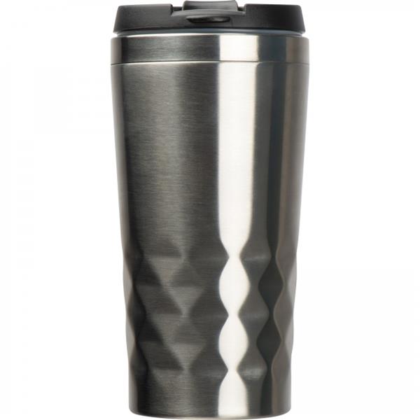 Kubek termiczny z podwójnymi ściankami, nieślizgającym się dnem, wykonany ze stali nierdzewnej. Pojemność 400 ml. Kubek nie będzie w 100% szczelny, jeśli płyn będzie miał zbyt wysoką temperaturę lub jeśli zostanie odwrócony do góry dnem.