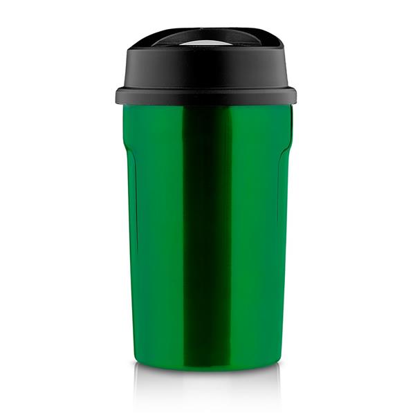 Kubek termiczny 400 ml Air Gifts, posiada podwójne ścianki ze stali nierdzewnej z miedzianą izolacją próżniową, co spowalnia oddawanie temperatury na zewnątrz, zachowując funkcje termosu, plastikowe wieczko z przyciskiem otwarcia/zamknięcia ustnika umożliwiającym obsługę jedną ręką, błyszczące wykończenie, utrzymuje temperaturę napojów gorących do 15 godzin +leakproof
