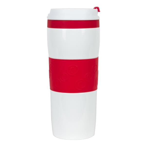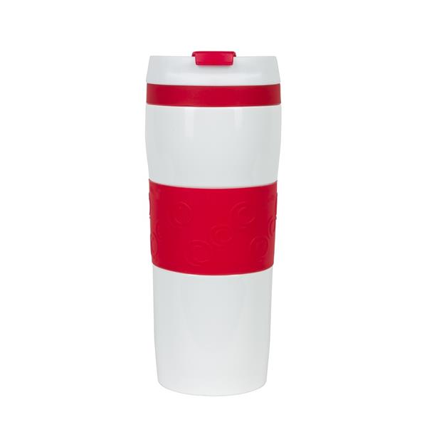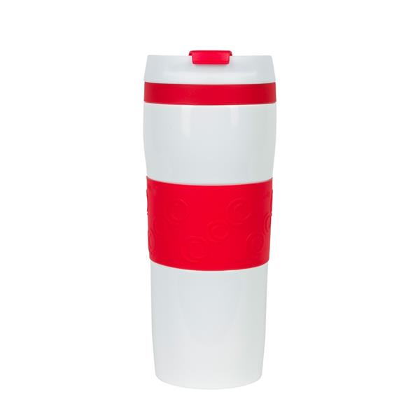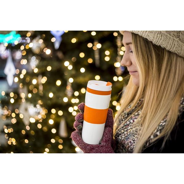 Kubek termiczny 400 ml Air Gifts, posiada podwójne ścianki ze stali nierdzewnej z miedzianą izolacją próżniową, co spowalnia oddawanie temperatury na zewnątrz, zachowując funkcje termosu, plastikowe wieczko z zamknięciem umożliwiającym obsługę jedną ręką, kolorowy silikonowy uchwyt zwiększający wygodę użytkowania, błyszczące wykończenie, utrzymuje temperaturę napojów gorących do 10 godzin +leakproof