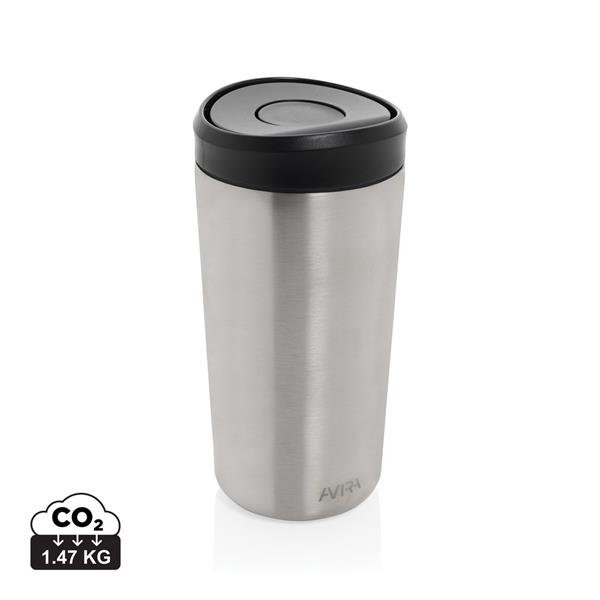 Kubek termiczny 400 ml, nie wymaga obsługi oburącz, wykonany z materiałów z recyklingu, całkowita zawartość materiałów z recyklingu obliczona na podstawie wagi całkowitej produktu: 66%