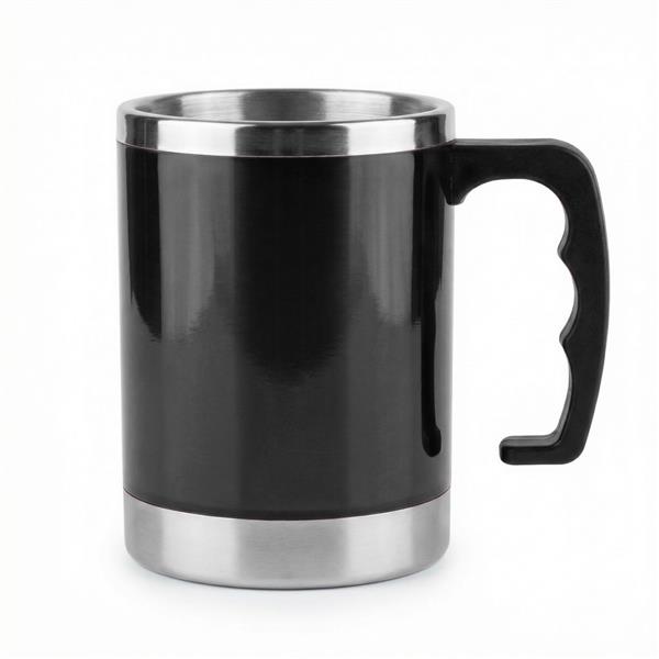 Kubek termiczny 400 ml, podwójne ścianki, wnętrze ze stali nierdzewnej, plastikowa rączka i wieczko, utrzymuje temperaturę napojów gorących do 4 godzin