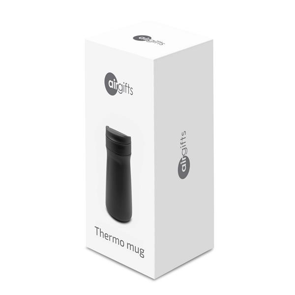 Kubek termiczny 450 ml Air Gifts, podwójne ścianki ze stali nierdzewnej z próżnią między ściankami, dzięki czemu zachowuje funkcje termosu i długo utrzymuje temperaturę nie oddając jej na zewnątrz, plastikowe wieczko, nie wymaga obsługi oburącz, produkt malowany proszkowo, matowe wykończenie, utrzymuje temperaturę napojów gorących do 15 godzin +leakproof