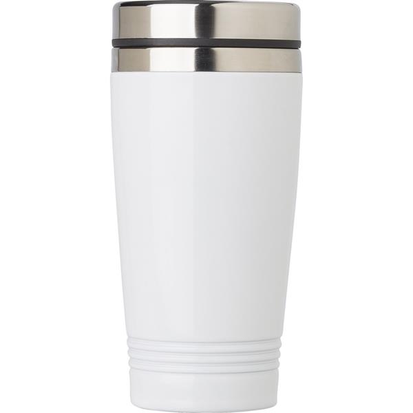 Kubek termiczny 450 ml, podwójne ścianki, wieczko z zamknięciem, antypoślizgowy spód, utrzymuje temperaturę napojów gorących do 4 godzin