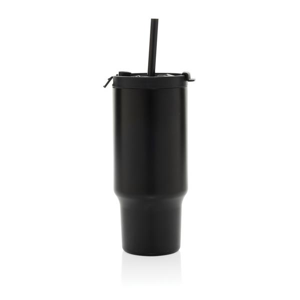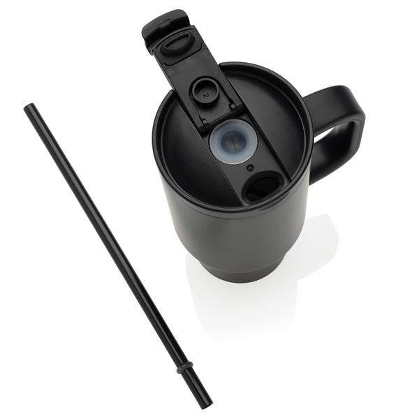 Kubek termiczny 480 ml, podwójne ścianki z próżnią pomiędzy dzięki czemu kubek posiada funkcję termosu, posiada słomkę i szeroki otwór do picia, wykonany z materiałów z recyklingu, całkowita zawartość materiałów z recyklingu obliczona na podstawie wagi całkowitej produktu: 73%
