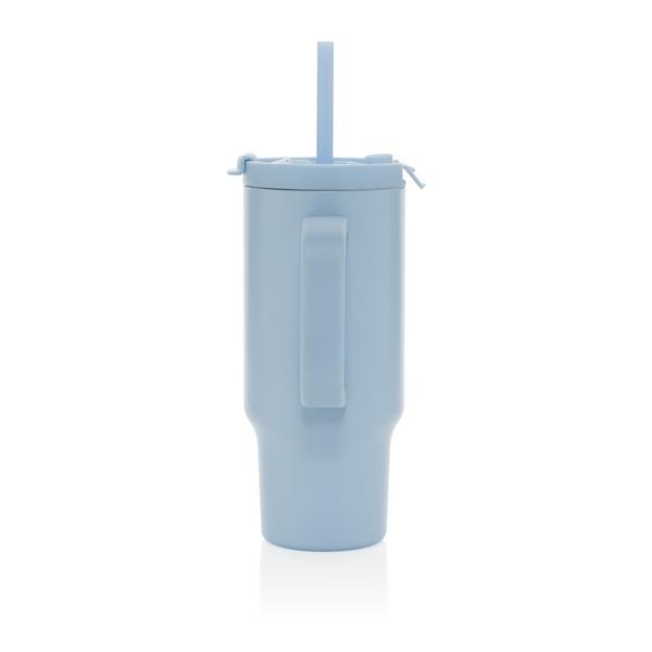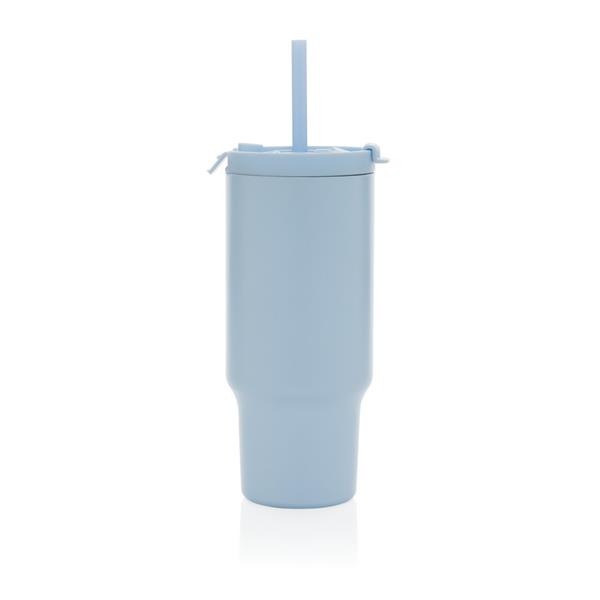 Kubek termiczny 480 ml, podwójne ścianki z próżnią pomiędzy dzięki czemu kubek posiada funkcję termosu, posiada słomkę i szeroki otwór do picia, wykonany z materiałów z recyklingu, całkowita zawartość materiałów z recyklingu obliczona na podstawie wagi całkowitej produktu: 73%