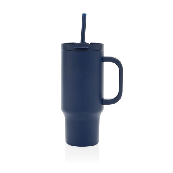 Kubek termiczny 480 ml, podwójne ścianki z próżnią pomiędzy dzięki czemu kubek posiada funkcję termosu, posiada słomkę i szeroki otwór do picia, wykonany z materiałów z recyklingu, całkowita zawartość materiałów z recyklingu obliczona na podstawie wagi całkowitej produktu: 73%