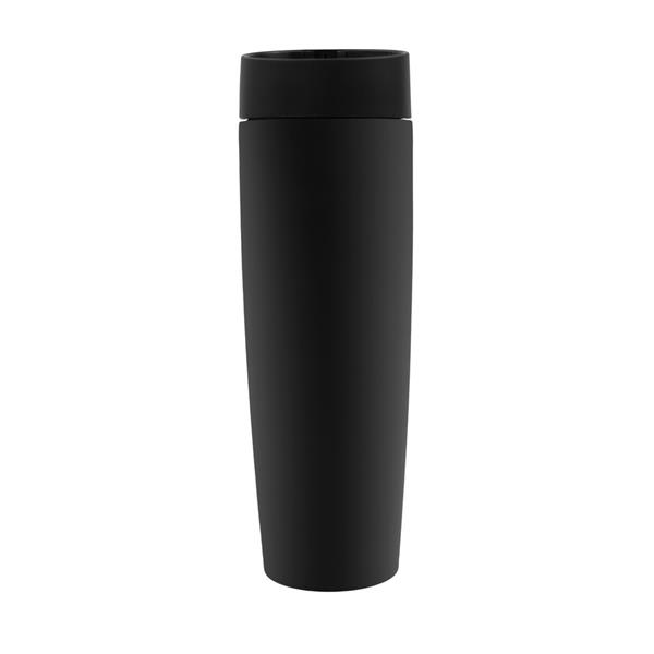 Kubek termiczny 500 ml Air Gifts, posiada podwójne ścianki ze stali nierdzewnej z miedzianą izolacją próżniową, co spowalnia oddawanie temperatury na zewnątrz, zachowując funkcje termosu, plastikowe wieczko z przyciskiem otwarcia/zamknięcia ustnika umożliwiającym obsługę jedną ręką, matowe wykończenie, utrzymuje temperaturę napojów gorących do 20 godzin +leakproof
