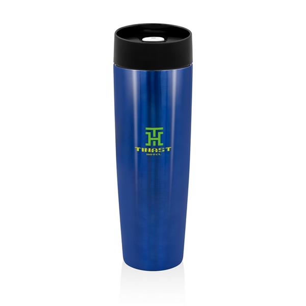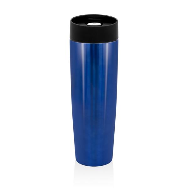 Kubek termiczny 500 ml Air Gifts, posiada podwójne ścianki ze stali nierdzewnej z miedzianą izolacją próżniową, co spowalnia oddawanie temperatury na zewnątrz, zachowując funkcje termosu, plastikowe wieczko z przyciskiem otwarcia/zamknięcia ustnika umożliwiającym obsługę jedną ręką, błyszczące wykończenie, utrzymuje temperaturę napojów gorących do 20 godzin +leakproof
