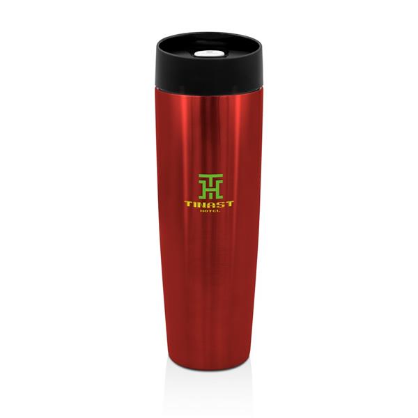 Kubek termiczny 500 ml Air Gifts, posiada podwójne ścianki ze stali nierdzewnej z miedzianą izolacją próżniową, co spowalnia oddawanie temperatury na zewnątrz, zachowując funkcje termosu, plastikowe wieczko z przyciskiem otwarcia/zamknięcia ustnika umożliwiającym obsługę jedną ręką, błyszczące wykończenie, utrzymuje temperaturę napojów gorących do 20 godzin +leakproof