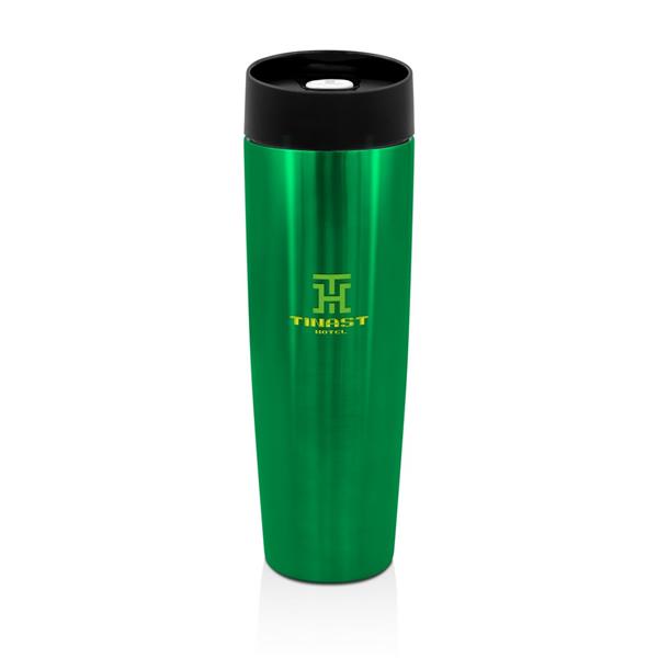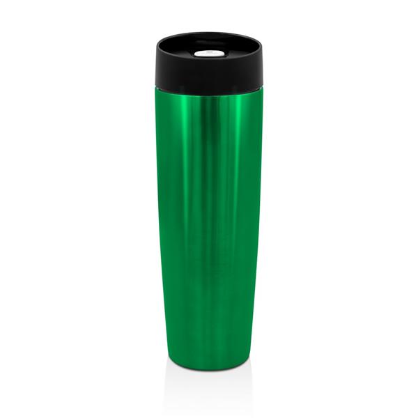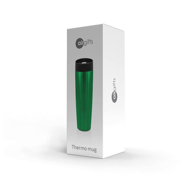 Kubek termiczny 500 ml Air Gifts, posiada podwójne ścianki ze stali nierdzewnej z miedzianą izolacją próżniową, co spowalnia oddawanie temperatury na zewnątrz, zachowując funkcje termosu, plastikowe wieczko z przyciskiem otwarcia/zamknięcia ustnika umożliwiającym obsługę jedną ręką, błyszczące wykończenie, utrzymuje temperaturę napojów gorących do 20 godzin +leakproof