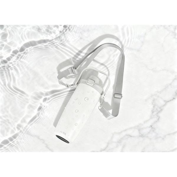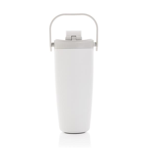 Kubek termiczny 600 ml, posiada ustnik, słomkę oraz pasek do noszenia, nie wymaga obsługi oburącz, podwójne ścianki ze stali nierdzewnej z próżnią pomiędzy, wykonany ze stali nierdzewnej z recyklingu z certyfikatem RCS