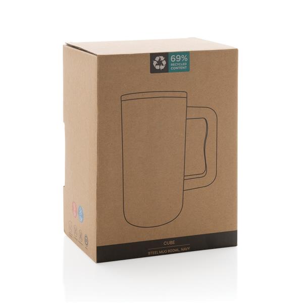 Kubek termiczny 800 ml, posiada słomkę z silikonową nakładką, zakręcane wieczko, wykonany ze stali nierdzewnej z recyklingu, podwójne ścianki ze stali nierdzewnej z próżnią między ściankami, dzięki czemu zachowuje funkcje termosu i długo utrzymuje temperaturę nie oddając jej na zewnątrz, zalecane mycie ręczne