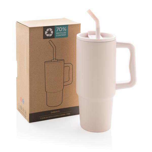 Kubek termiczny 900 ml, wykonany ze stali nierdzewnej z recyklingu, podwójne ścianki ze stali nierdzewnej z próżnią pomiędzy, zakręcane wieczko z dziubkiem i słomką, zalecane mycie ręczne, ślad węglowy produktu: 0 kg CO2