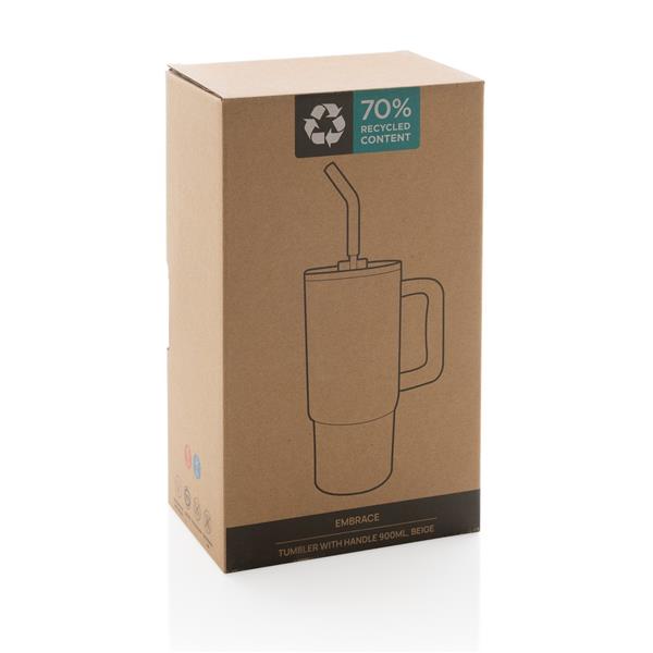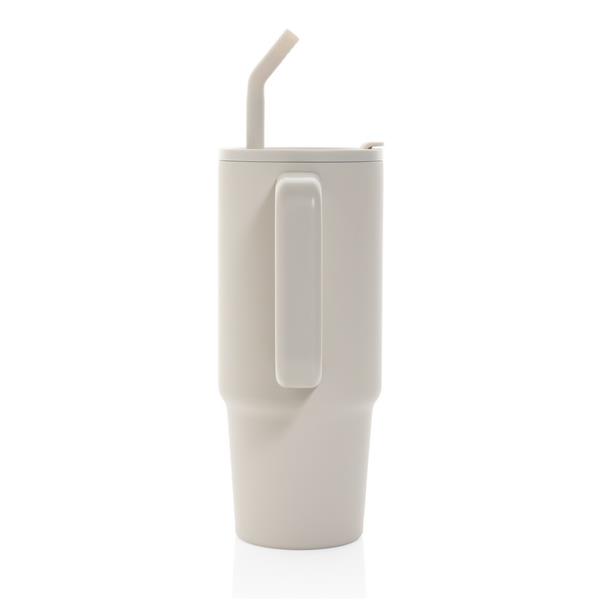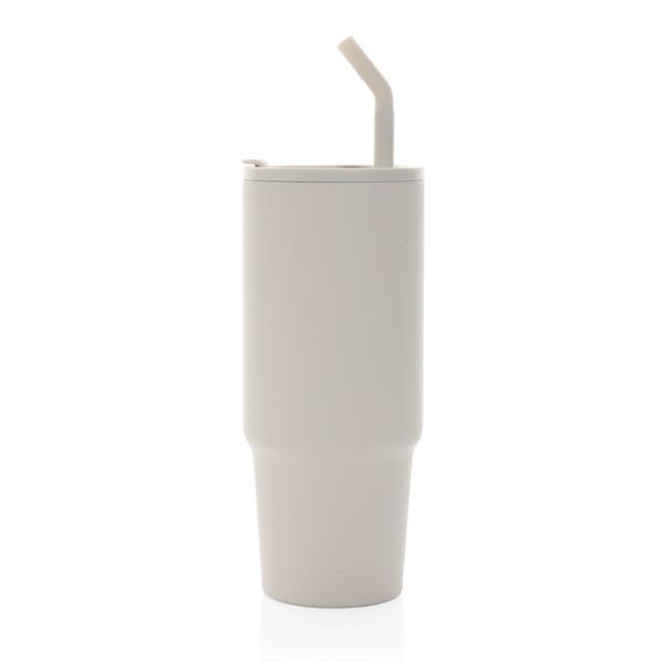 Kubek termiczny 900 ml, wykonany ze stali nierdzewnej z recyklingu, podwójne ścianki ze stali nierdzewnej z próżnią pomiędzy, zakręcane wieczko z dziubkiem i słomką, zalecane mycie ręczne, ślad węglowy produktu: 0 kg CO2