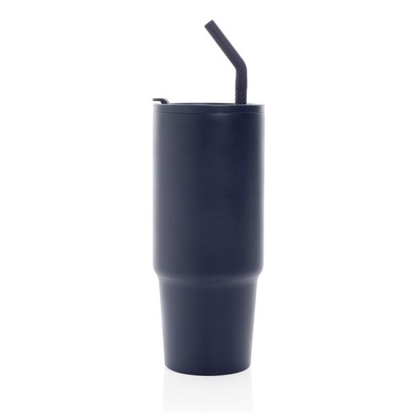 Kubek termiczny 900 ml, wykonany ze stali nierdzewnej z recyklingu, podwójne ścianki ze stali nierdzewnej z próżnią pomiędzy, zakręcane wieczko z dziubkiem i słomką, zalecane mycie ręczne, ślad węglowy produktu: 0 kg CO2