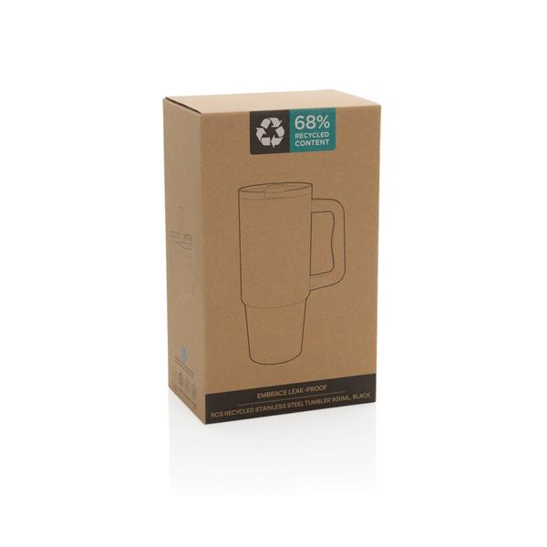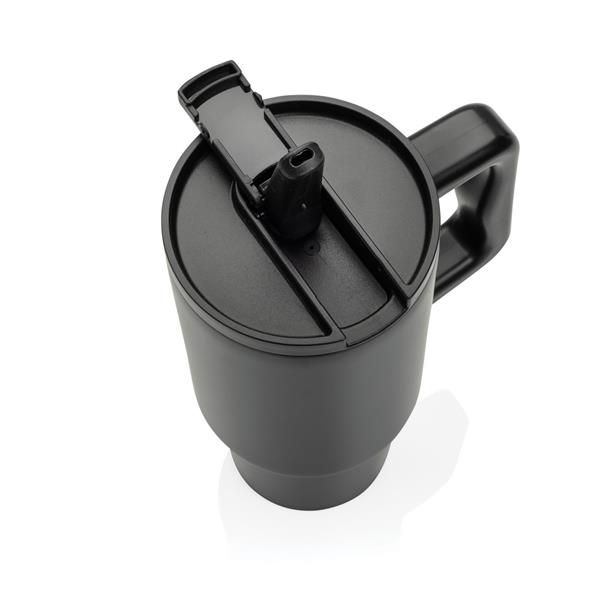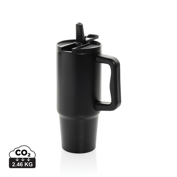 Kubek termiczny 900 ml, podwójne ścianki ze stali nierdzewnej z próżnią pomiędzy, obsługa jedną ręką, szczelne wieczko z dziubkiem i słomką, wyłącznie mycie ręczne, całkowita zawartość materiałów z recyklingu obliczona na podstawie wagi całkowitej przedmiotu: 68%