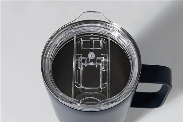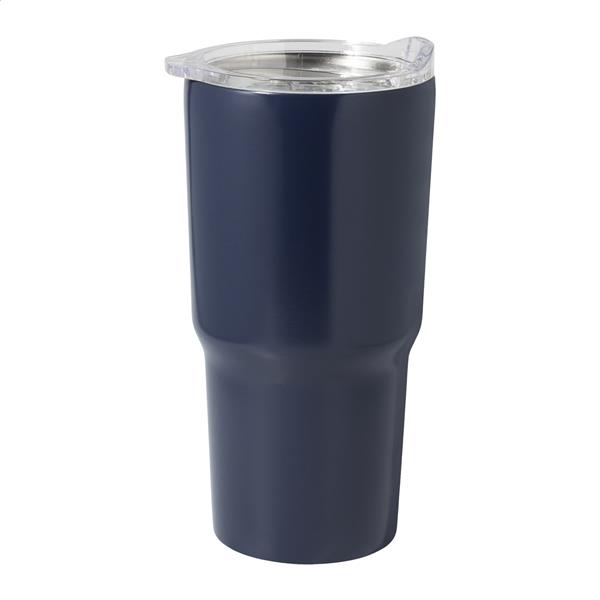 Kubek termiczny o podwójnych ściankach, izolowany próżniowo ze stali nierdzewnej pochodzącej z recyklingu, z pokrywką do picia z tworzywa sztucznego PS. 600ml.
