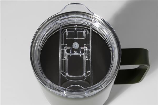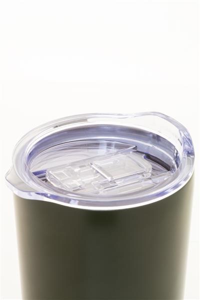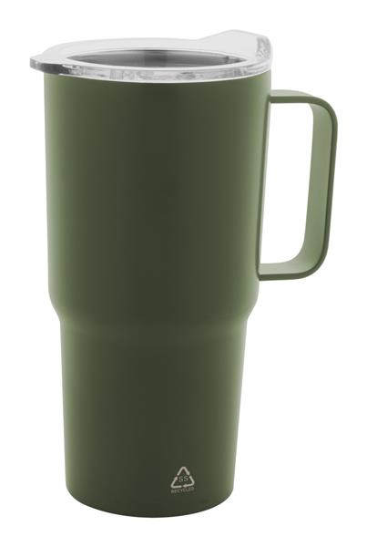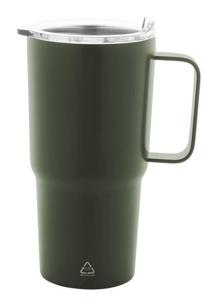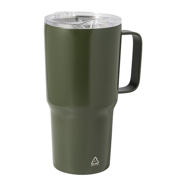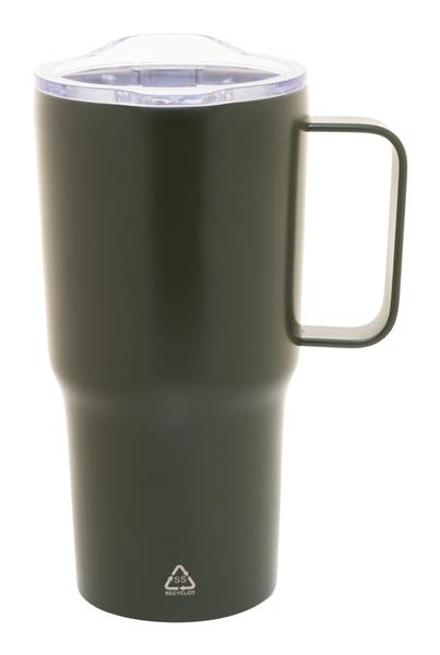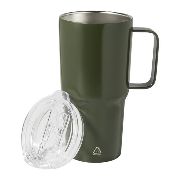 Kubek termiczny o podwójnych ściankach, izolowany próżniowo ze stali nierdzewnej pochodzącej z recyklingu, z pokrywką do picia z tworzywa sztucznego PS. 600ml.