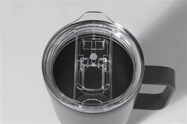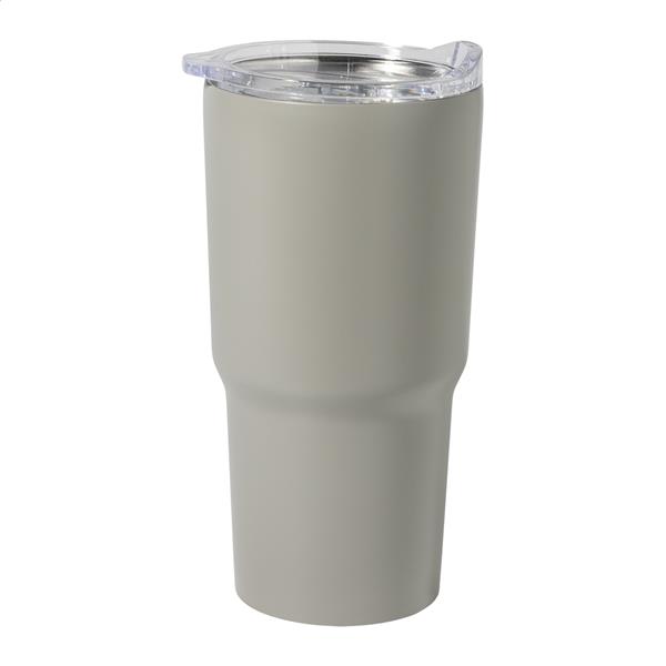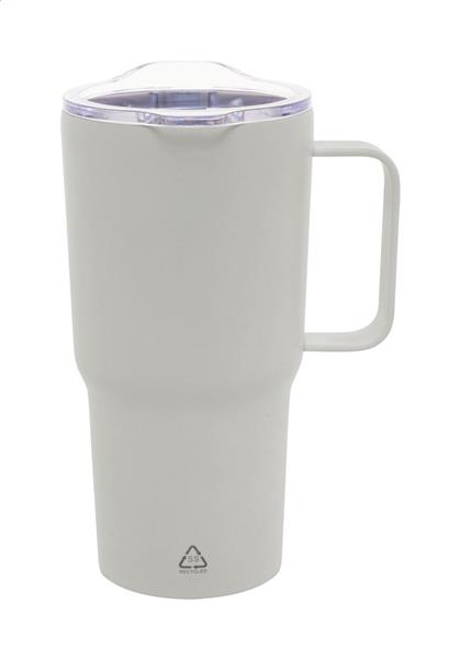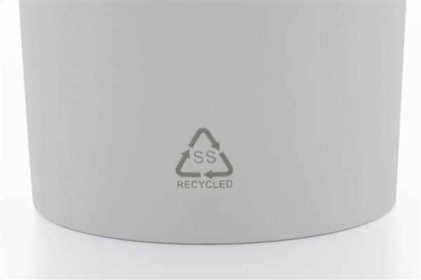 Kubek termiczny o podwójnych ściankach, izolowany próżniowo ze stali nierdzewnej pochodzącej z recyklingu, z pokrywką do picia z tworzywa sztucznego PS. 600ml.